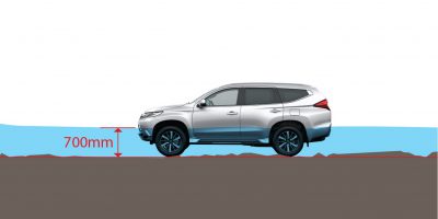 Nhờ khoảng sáng gầm xe cao, All New Pajero Sport có khả năng lội nước vượt trội,xứng danh thương hiệu xe đến từ xứ sở hoa anh đào.